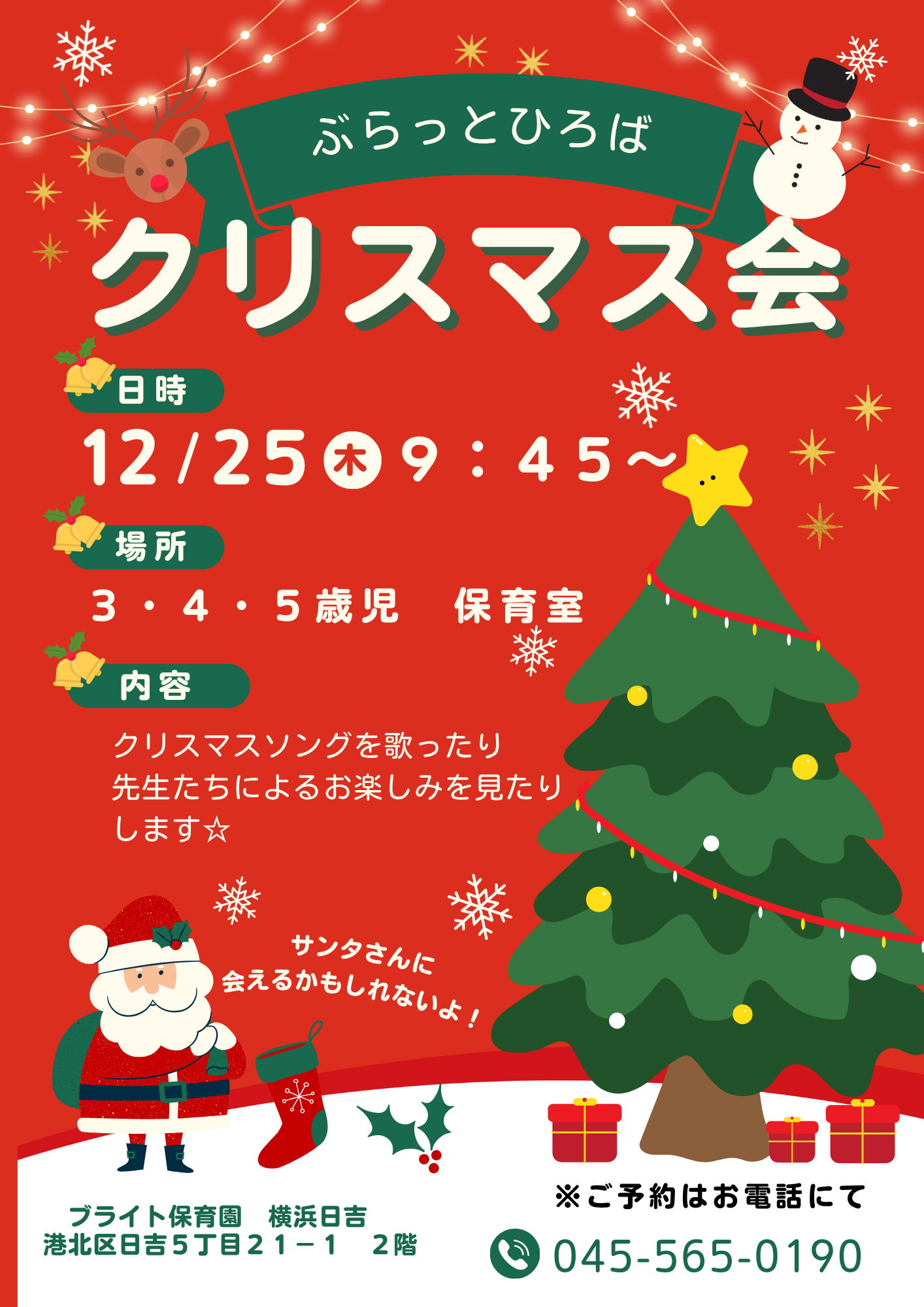 2025-12-05 地域子育て「ぶらっとひろば」 クリスマス会のお知らせ