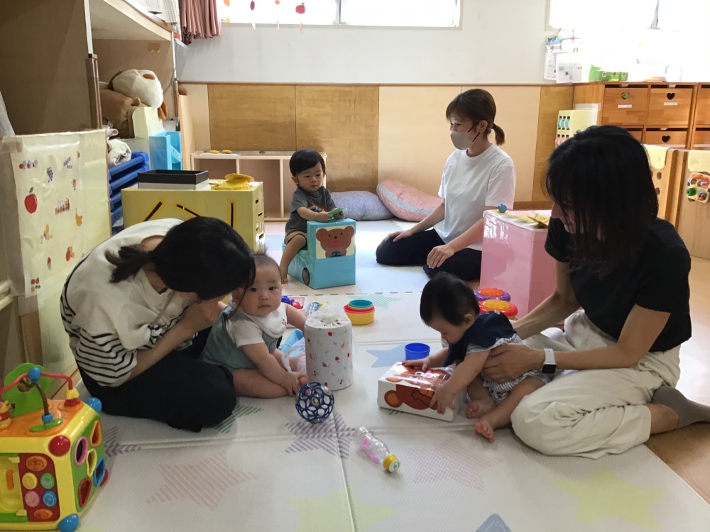 24日は0歳児のお部屋で、お母さんとゆっくりお話させてもらったり平日の園の雰囲気を見てもらいました。