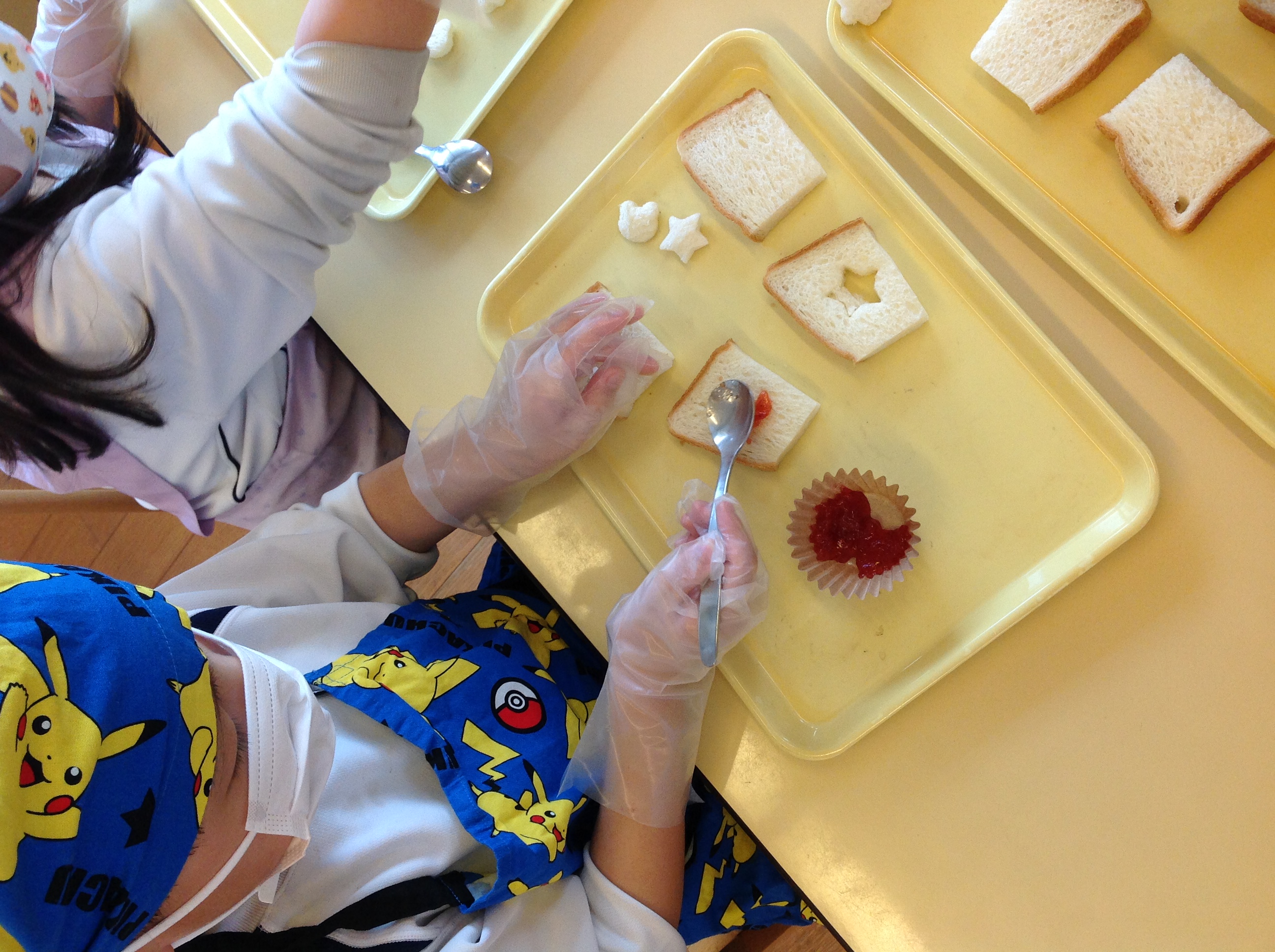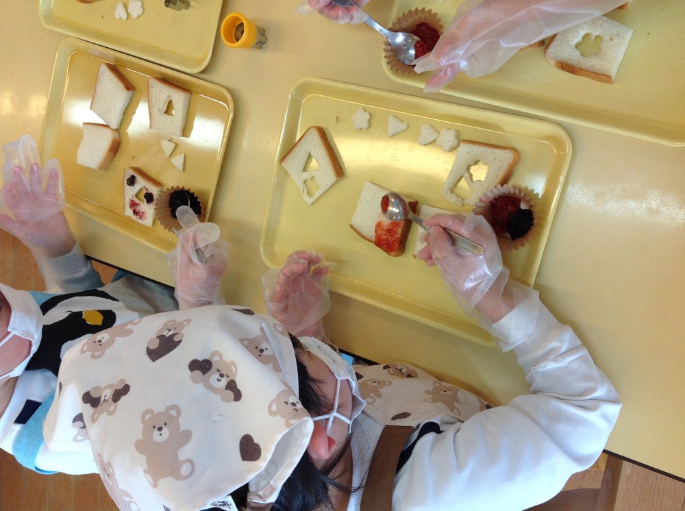 5歳児さんで型抜きサンドイッチ作りをしました!