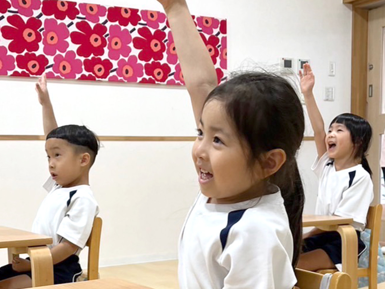 3・4・5歳児は朝の会。皆そろって朝のあいさつ!