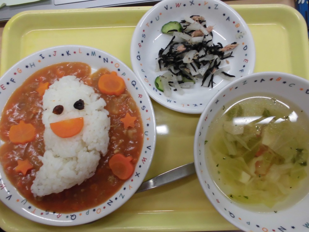 給食もおばけのカレーで可愛い♪と美味しくいただきました。