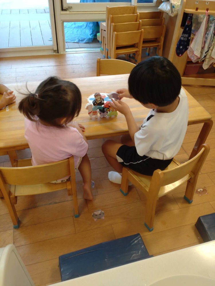 2歳児さんのお友だちには、玩具の遊び方を丁寧に教えてくれて